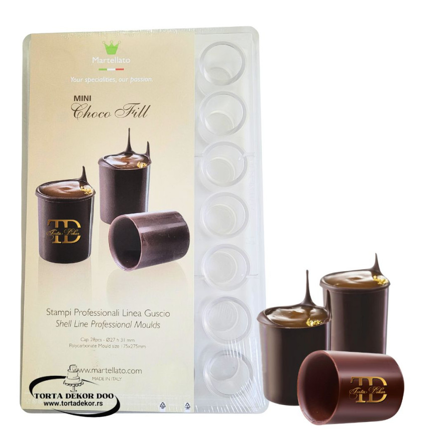 Profesionalni kalupi izrađeni od polikarbonata, materijala koji Vam omogućava da dobijete savršene čokoladne čašice u orginalnim oblicima. Važno je dobro temperirati čokoladu pre nego se ulije u kalup.