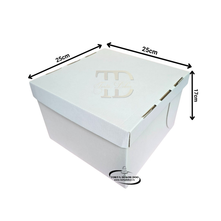 Kutija za tortu dimenzija 25x25x17 cm izrađena je od najkvalitetnije troslojne valovite lepenke, što omogućava izuzetnu čvrstoću i stabilnost tokom transporta većih i težih torti. Zahvaljujući snažnoj konstrukciji, idealna je za profesionalnu upotrebu u poslastičarnicama, keteringu i dostavi. Kutija se lako sklapa i zatvara, bez potrebe za dodatnim lepljenjem. Isporučuje se u setu od 5 komada.