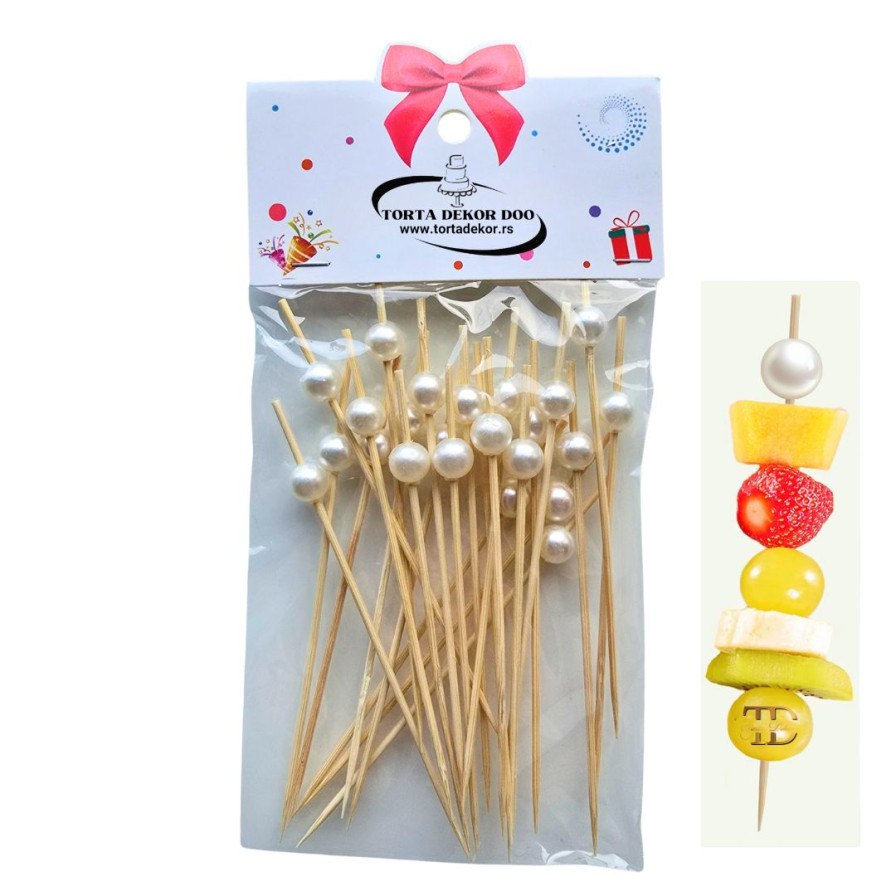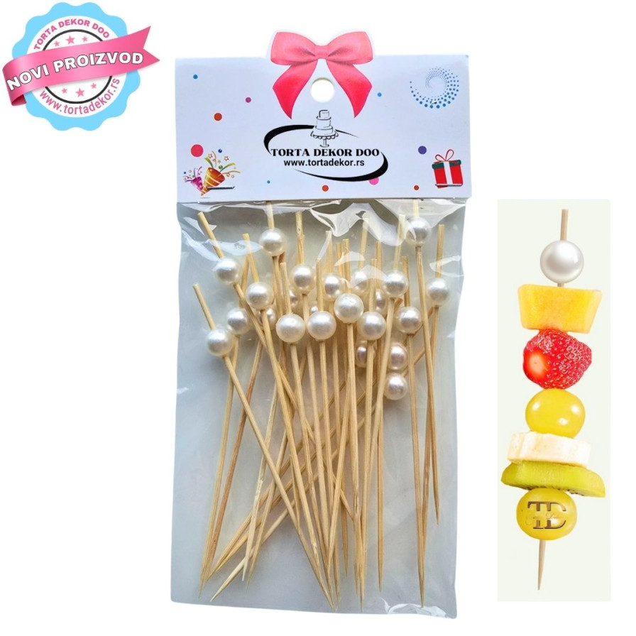 Ovaj set sadrži 24 koktel čačkalica dužine 12 cm, savršen za vašu svakodnevnu upotrebu. Napravljen od visokokvalitetnog prirodnog bambusa, čačkalice su čvrste, sa glatkom površinom i bisernom lopticom na vrhu, što olakšava korišćenje. Njihov elegantan dizajn dodaje stil vašim zalogajima, a idealne su za dekoraciju kanapea, sendviča, koktela, martini maslina, voćnih ražnjića... 🍡🍢🍹🍸. Ove čačkalice su savršene za svaku proslavu, i čine da vaši kokteli i predjela izgledaju profesionalno.