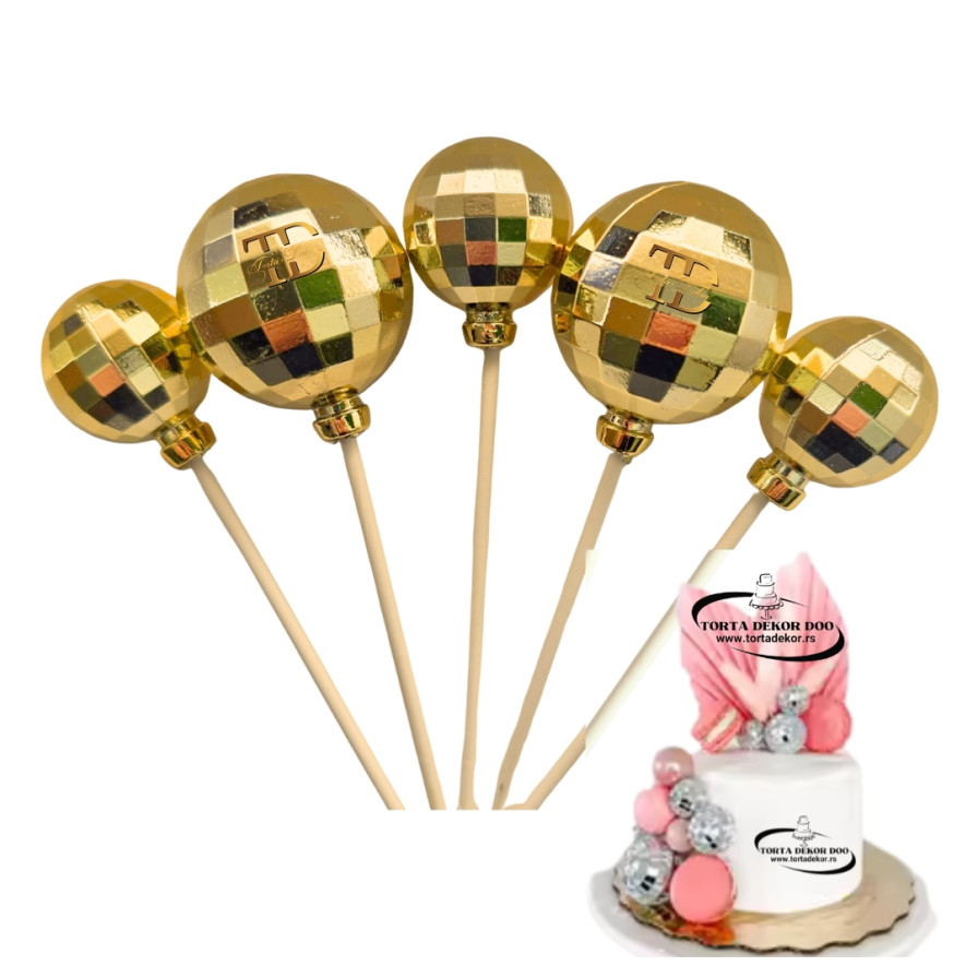 Set Za Dekoraciju - Disco Ball (ZLATNE Disko Kugle - Toper Na Štapiću) 5 kom