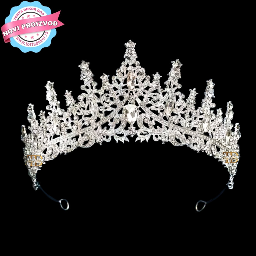 Elegantna dekorativna tiara izrađena od kvalitetnog metala, savršena za dekoraciju torti na rođendanima, krštenjima, devojačkim večerima i proslavama. Tiara je čvrsta, detaljno urađena i ukrašena sjajnim kamenčićima koji daju luksuzan izgled.