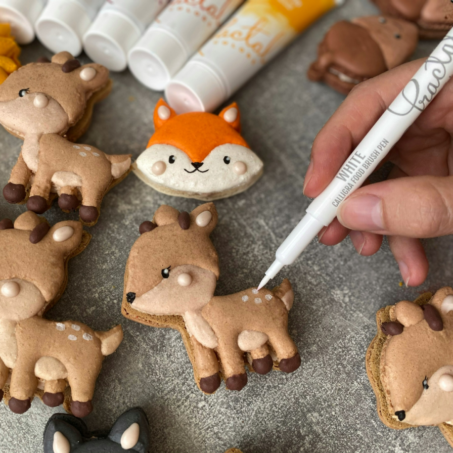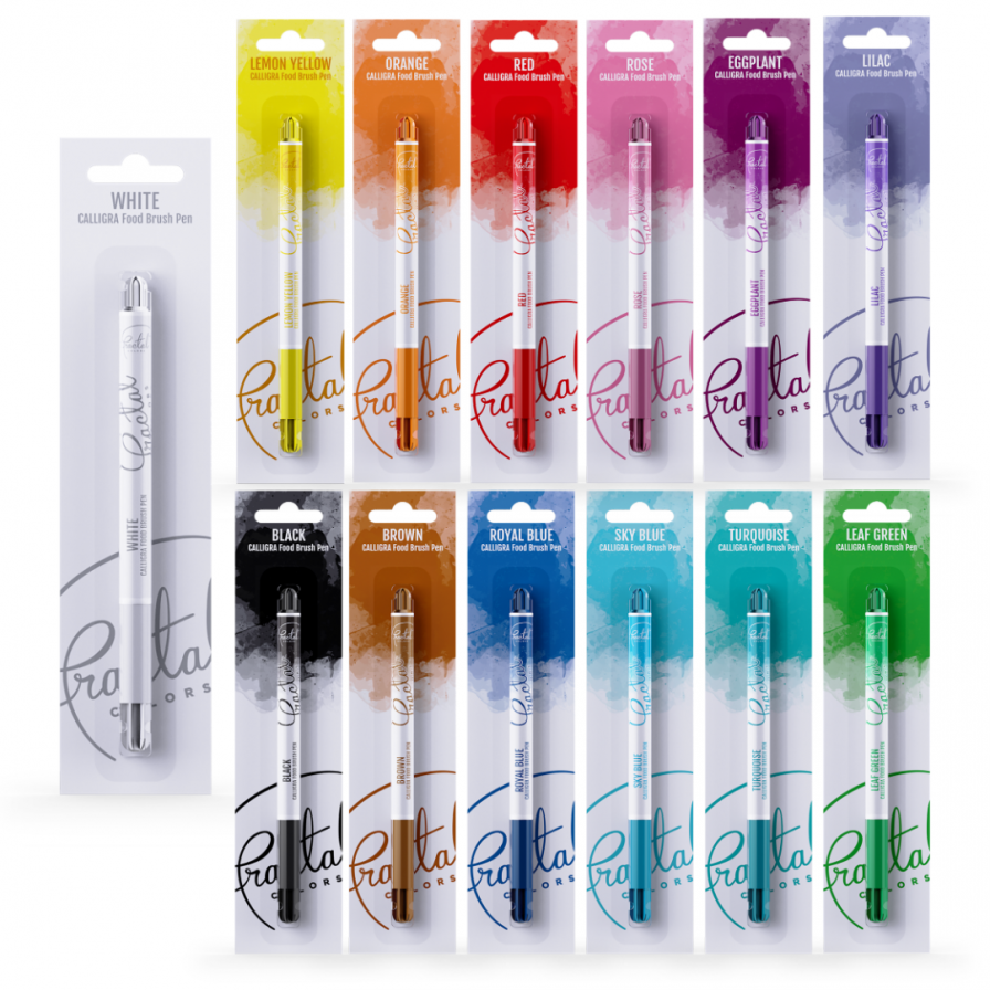 Fractal Colors Calligra visokokvalitetni jestivi flomasteri u širokom asortimanu boja koji služe za precizno slikanje, crtanje i ispisivanje po suvoj, tvrdoj ili polu-tvrdoj površini Vašeg slatkiša... Uz bogato punjenje jestivom bojom i najkvalitetnijim Calligra vrhom ispuniće sva Vaša očekivanja i pomoći u stvaranju umetničkih dela. Uživajte u bojama!