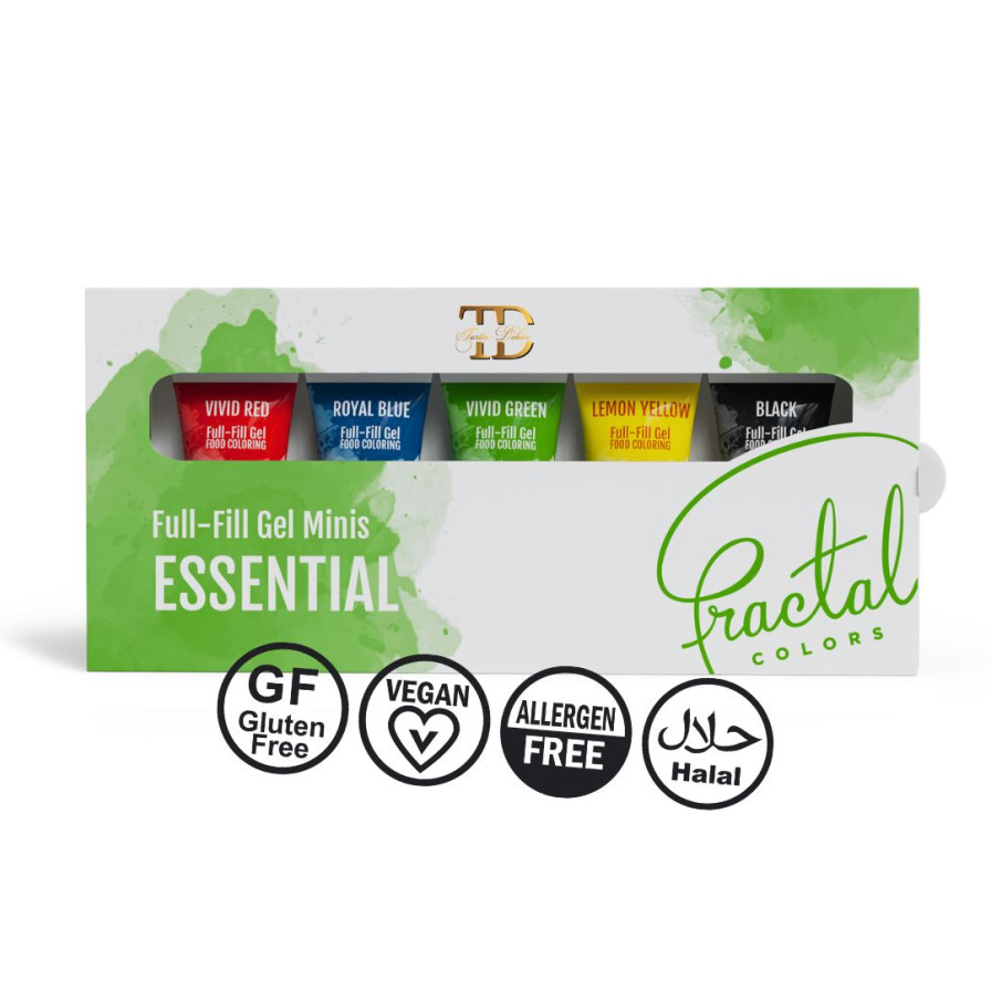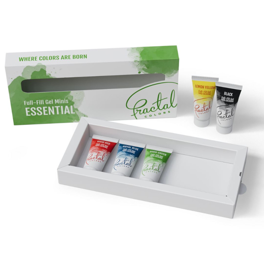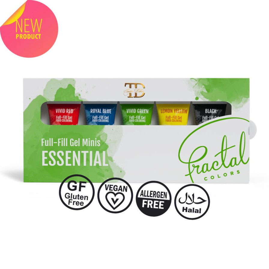Ovaj set sadrži manje verzije naših popularnih i omiljenih jestivih Gelova - savršen za one koji ređe peku, ali i dalje žele kvalitetne boje. U ovim manjim pakovanjima od 12g se nalazi pet osnovnih boja: Jarko Crvena, Kraljevsko Plava, Jarko Zelena, Limun Žuta i Crna. Kvalitet ovih prehrambenih boja je identičan kao kod većih od 30g. Osnovni načini upotrebe: Visoko koncentrovana gel formula znači da je potrebno samo nekoliko kapi da se postigne željena nijansa. Ove boje su pogodne za bojanje marcipana, fondana, krema, pa čak i testa, jer su termootporne, što znači da boja neće izbledeti ili promeniti nijansu kada su izložene toploti. Boje se mogu mešati međusobno da bi se dobila bilo koja nijansa duge od samo ovih pet osnovnih boja.