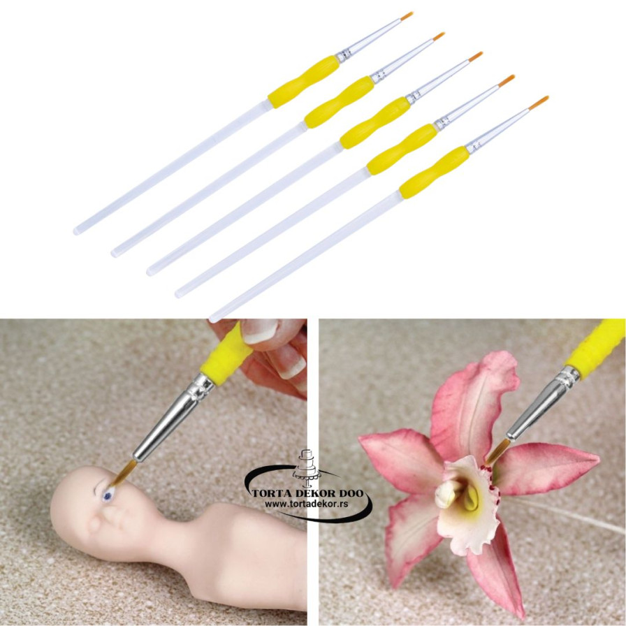 Podignite ukrašavanje torti na još viši nivo uz ovaj svestrani FINE set četkica. Dizajnirane sa posebnom pažnjom za poslastičarski zanat, ove četkice su savršene za slikanje direktno na fondan ili dodavanje finih završnih detalja vašim jestivim kreacijama.